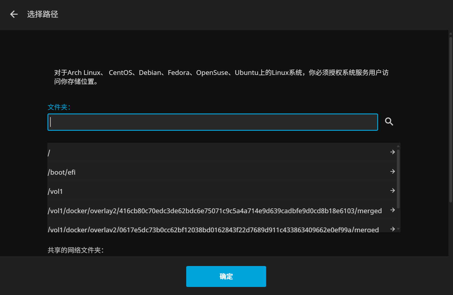 选择路径时我们可以返回飞牛云中jellyfin的应用设置复制文件夹的原始路径随后粘贴回jellyfin的路径中点旁边的搜索显示其子文件夹,随后选择需要添加的文件夹即可
